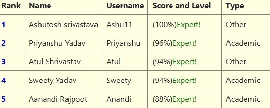 Result of April Quiz(Top 5)